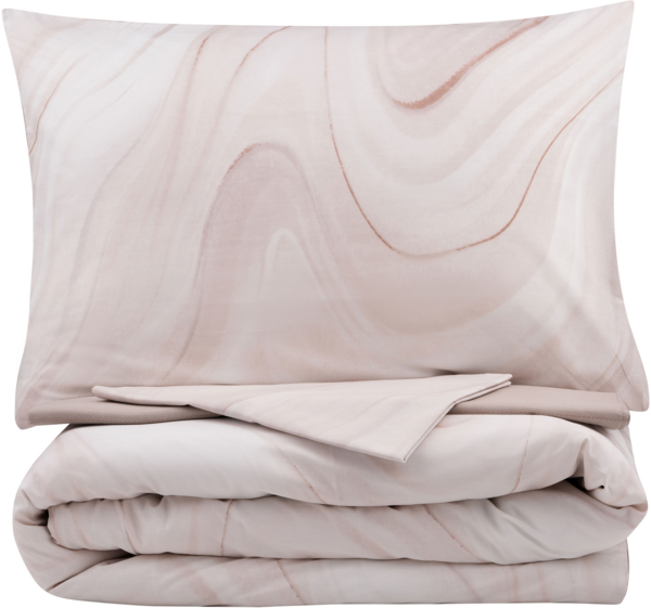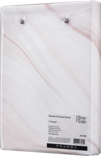 Комплект складається з підковдри 200х220 см, простирадла 230х240 см і двох наволочок 50х70 см, які разом створюють гармонійний ансамбль. Практичність теж на високому рівні – підковдра зручно застібається на блискавку, а наволочки мають клапан.