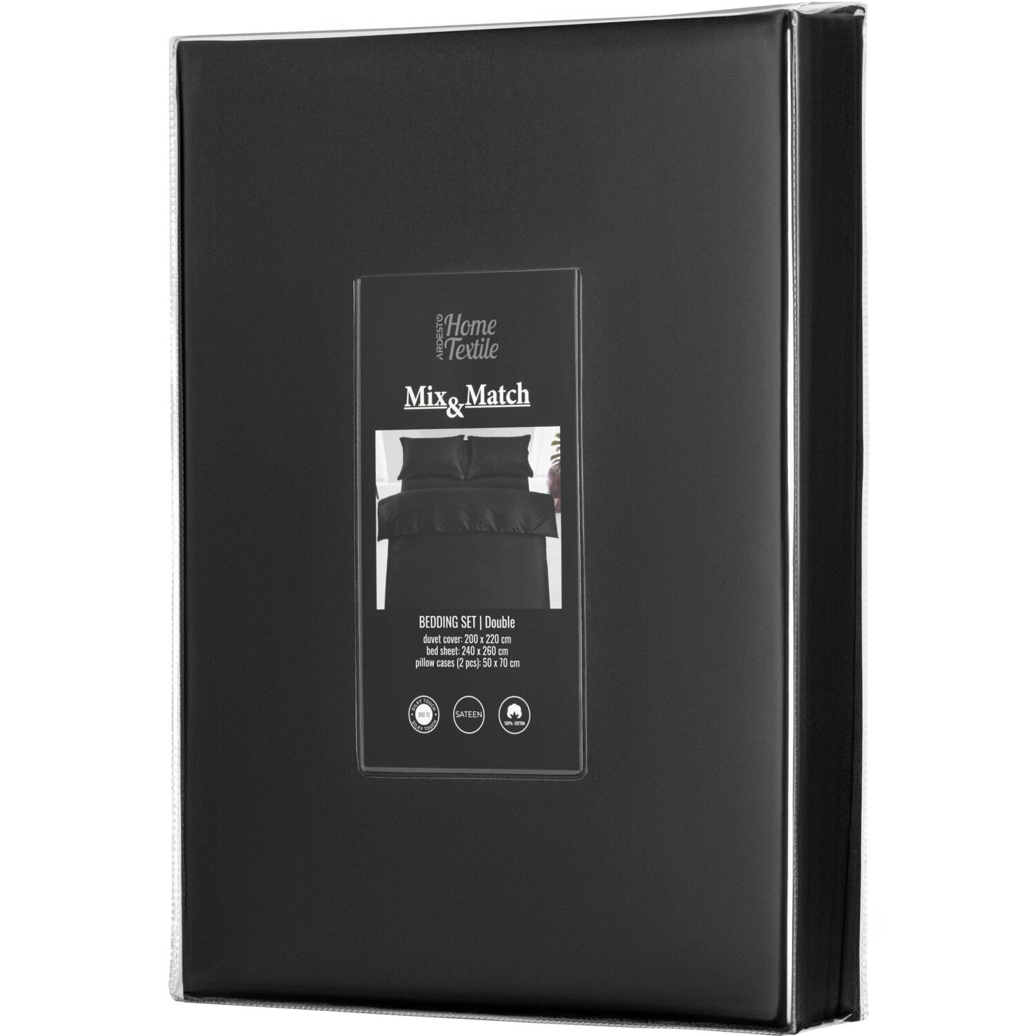 - Набір постільної білизни 2,0сп ARDESTO Mix&Match, підковдра 200х220см, 100% бавовна, сатин, чорний (ART2022SL)
