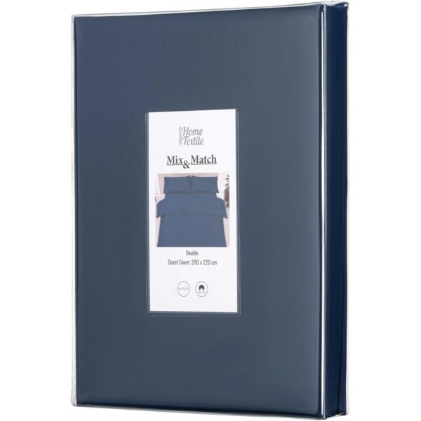 Комплект постільної білизни Mix & Match – це поєднання витонченого дизайну й безкомпромісної якості. Вироблена зі 100% бавовняного сатину щільністю 205 ТС, постіль подарує винятковий комфорт і затишок. М’яка тканина ніжно пестить шкіру, забезпечуючи її дихання і створюючи відчуття свіжості та легкості. Однотонний дизайн у насиченому синьому кольорі додає спальному місцю елегантності та сучасного стилю.
