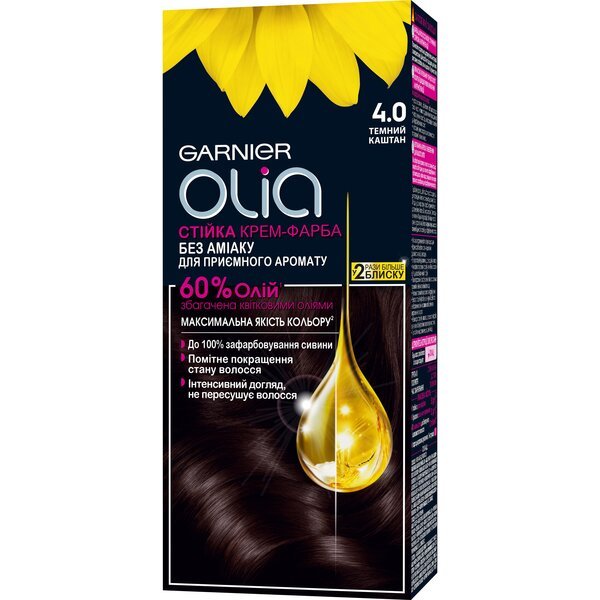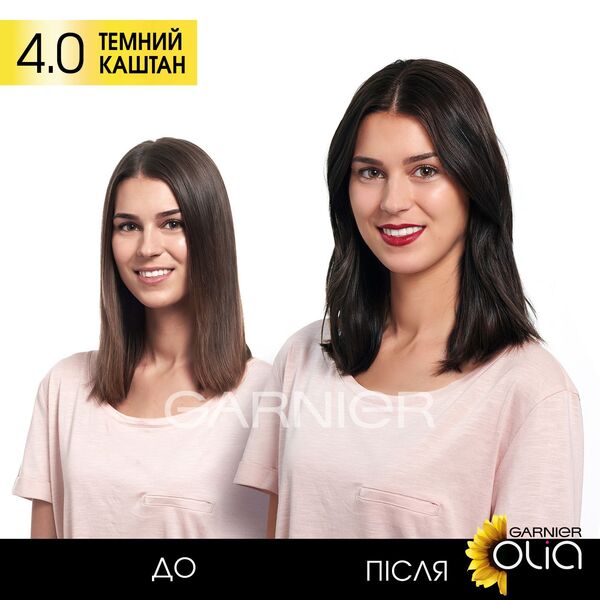 Опис Фарба для волосся Garnier Olia Базова лінійка відтінок 4.0 Темний каштан