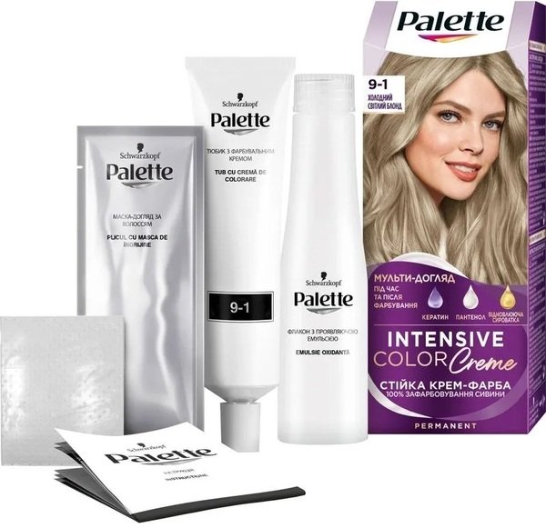 - Фарба для волосся Palette Intensive Color Creme 9-1 Холодний світлий блонд 110мл