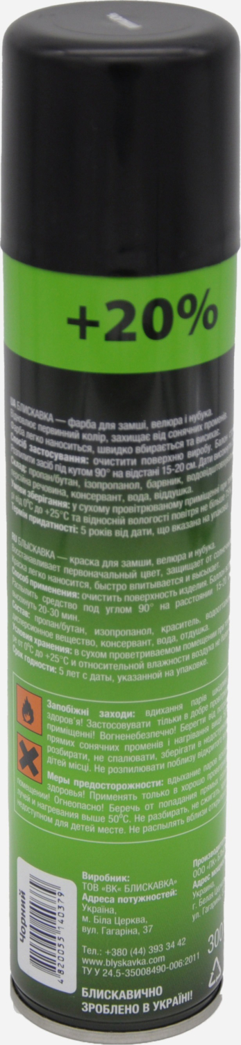 Фарба для замші, нубуку, велюру Blyskavka екстра чорна 300 мл