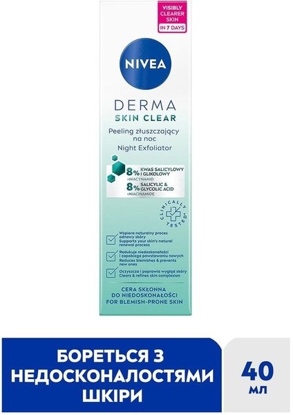Крем-ексфоліант для обличчя нічний Nivea derma skin clear 40мл