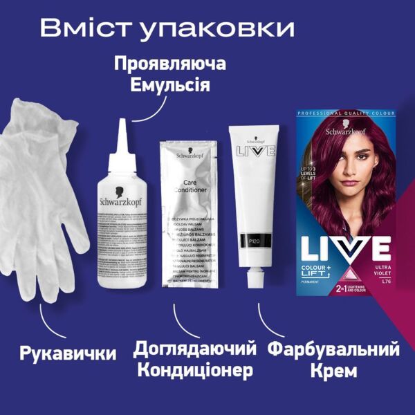 Схожі товари Крем-фарба для волосся Live L76 Освітлення і колір ультра фіолетовий