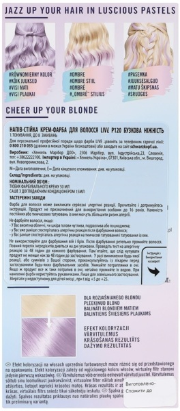 Схожі товари Крем-фарба для волосся напівстійка Live P120 Бузкова ніжність