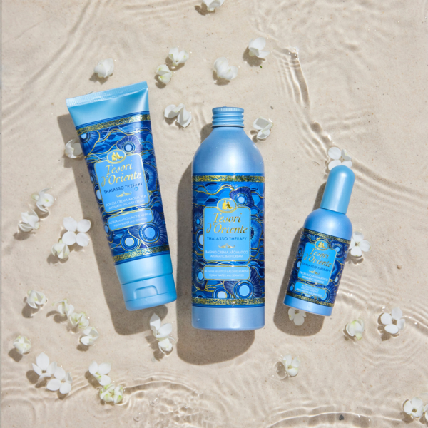 Парфумований крем-гель для душу Thalasso Therapy - засіб, який забезпечує щоденний догляд за шкірою і злегка ароматизує її. Його випустили під італійським брендом Tesori d'Oriente як доповнення до однойменної парфумованої води, яка вже встигла полюбитися багатьом. Аромат унісекс належить до групи цитрусових фужерних. Привітальні ноти стартують свіжістю бергамота і лимона. У серці освіжаючий акорд підсилює тандем морської солі з морськими водоростями. Шляхетний шлейф формують нюанси мускусу і кедра. Перетворіть купання на спа-сеанс із крем-гелем для душу Tesori d'Oriente! Після застосування засобу шкіра радує бездоганною чистотою, стає неймовірно м'якою та гладенькою.