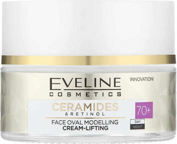 Крем-ліфтинг Eveline Cosmetics Ceramides&Retinol 70+ для моделювання овалу обличчя 50мл