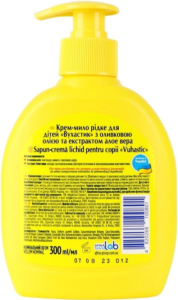 Крем-мило рідке дитяче Вухастик без віддушок і барвників 300млКрем-мило рідке дитяче Вухастик без віддушок і барвників 300мл