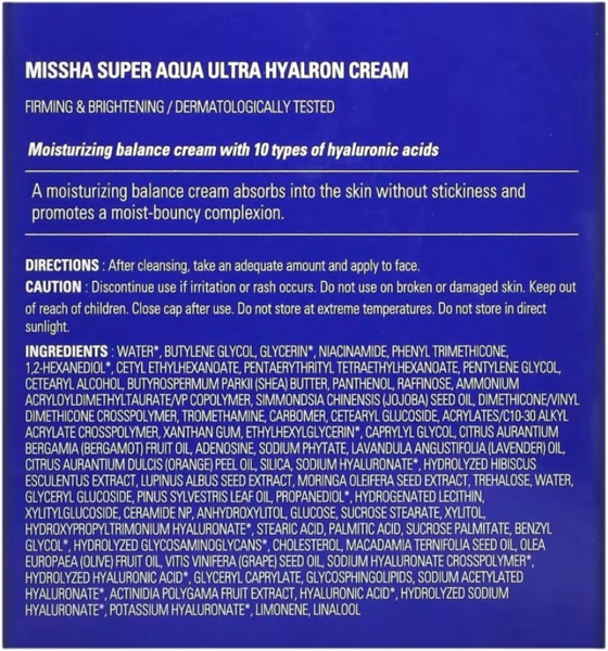 Крем для обличчя Missha Super Aqua Ultra Hyalron Cream Зволожувальний 70 мл