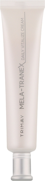 Освітлювальний крем проти пігментації Trimay Mela-Tranex Daily Vitalize Cream розроблений для зниження синтезу меланіну, боротьби з пігментними плямами та вирівнювання тону шкіри. Засіб ефективно освітлює вже наявні плями, запобігає появі нових, зменшує вираженість ластовиння та слідів постакне. Крем оживляє шкіру, повертає їй природне сяйво та покращує загальний вигляд. При регулярному застосуванні засіб помітно освіжає й омолоджує обличчя, роблячи його здоровим, доглянутим і відпочилим.