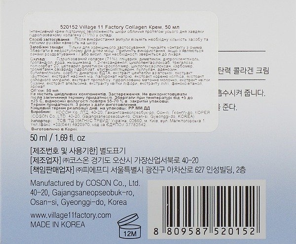 Зволожуючий крем для обличчя Village 11 Factory з колагеном 50мл