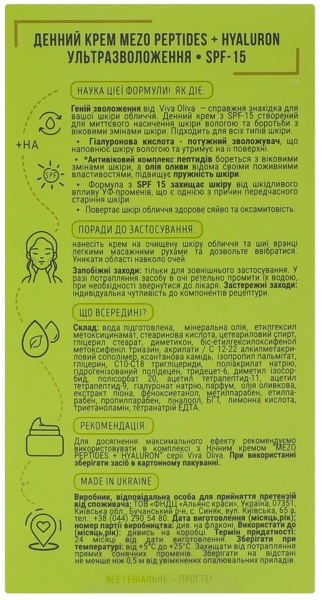 Схожі товари Крем для обличчя Viva Oliva Ультра-зволоження денний SPF15 75 мл