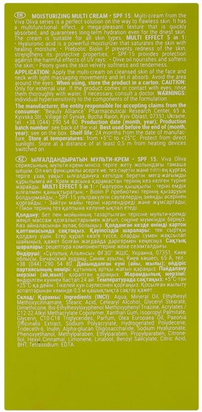 Схожі товари Крем для обличчя Viva Oliva Зволожуючий SPF15 75 мл