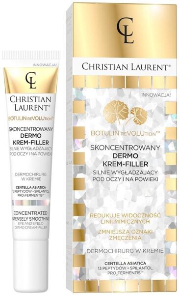 Інноваційний концентрований крем для шкіри навколо очей бренда Christian Laurent – це високоефективний відновлювальний засіб-філер на основі ботуліна. Він є косметичною альтернативою хірургічним маніпуляціям – розгладжує навіть глибокі зморшки, усуває сліди втоми та повертає епідермісу періорбітальної зони втрачений життєвий тонус.
