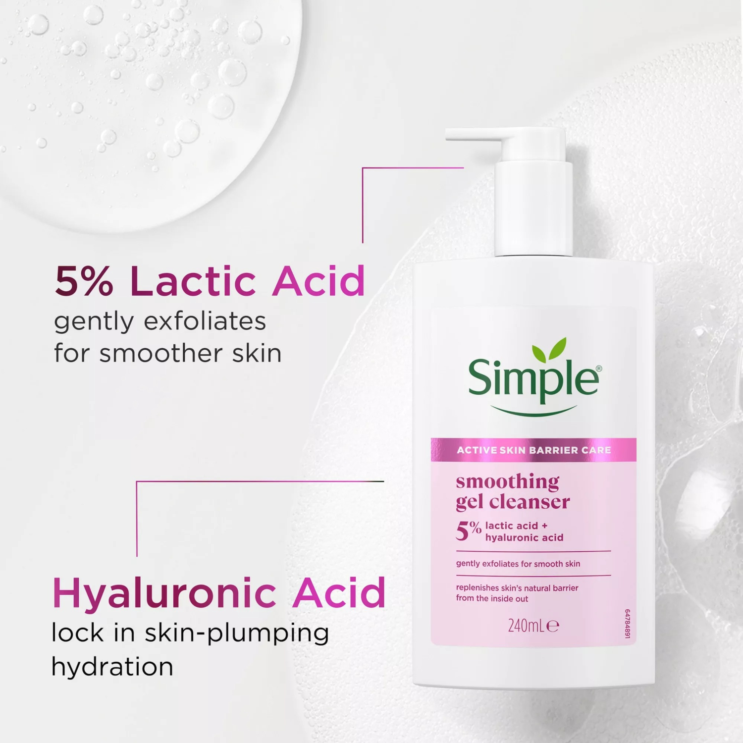 - Крем для вмивання Simple Activ Skin Smoothing Gel Cleanser з гіалуроновою та молочною кислотами 240 мл