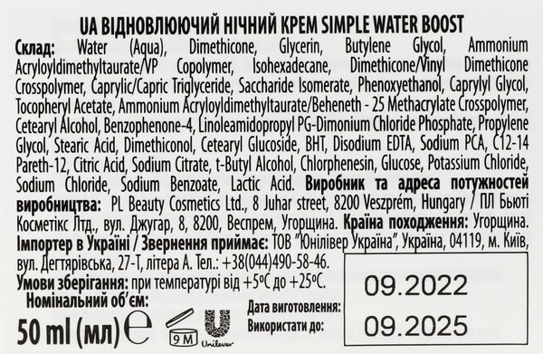 Схожі товари Крем нічний заспокійливий Simple Skin Quench Sleeping Cream Water Boost 50мл