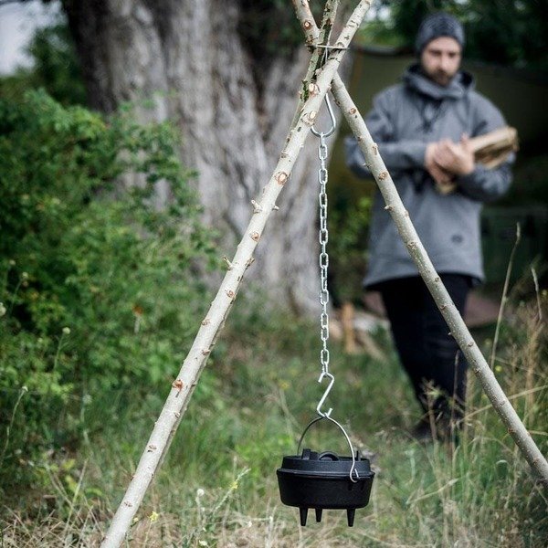 Набір Petromax Tripod Lashing допомагає зібрати триногу для багаття з підручних матеріалів. Складається з пластини, в отворах якої фіксуються палиці, а також ланцюга і двох гаків. Дозволяє з комфортом готувати на відкритому вогні у польових умовах. Зручне рішення для туристичних походів, сплавів, бушкрафту та інших видів відпочинку, де має значення вага та об'єм спорядження. Весь набір важить 450 г (у розмірі S) або 625 г (у розмірі L), легко поміщається в кишеню рюкзака.