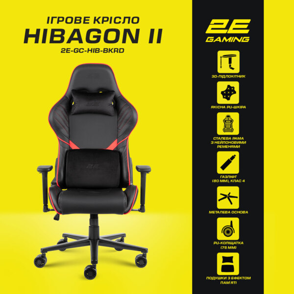 - Крісло ігрове 2E Gaming HIBAGON II Black/Red