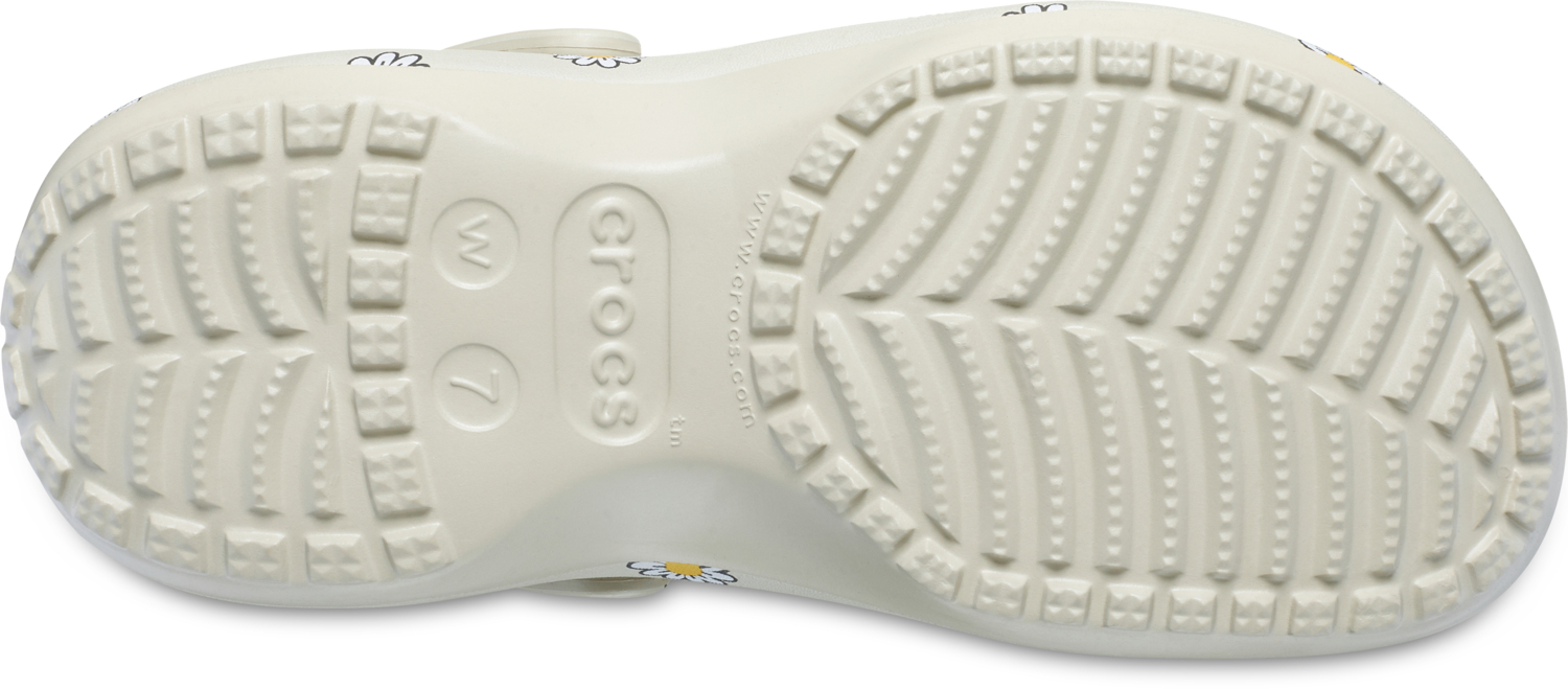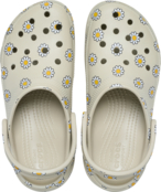 Вдосконалений стиль у повному розквіті. Класичні сабо на платформі перетворилися завдяки квітковому принту. Їх знаковий силует Crocs з платформою на танкетці надає кожному кроку сміливості та радісної енергії. Легкі, стильні і нескінченно зручні, вони є ідеальним поєднанням функціональності і моди. Завдяки настроюваному задньому ремінцю, на який можна прикріпити брелоки Jibbitz, ваш стиль готовий розквітнути.