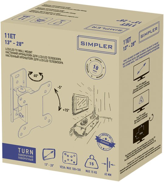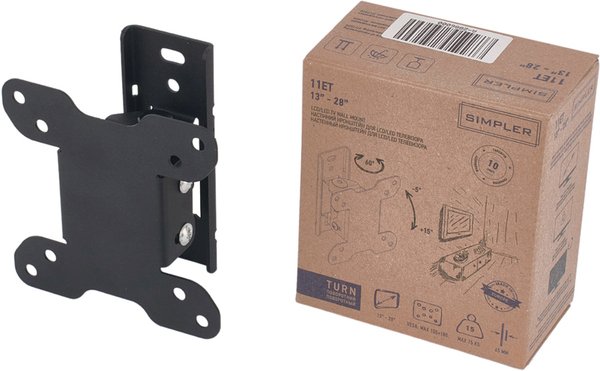 Кронштейн підходить для плазмових, LCD, LED телевізорів та моніторів з діагоналлю 13-28 дюймів та вагою до 15 кг. Стандарт VESA, що підтримується: від 75×75 мм до 100×100 мм