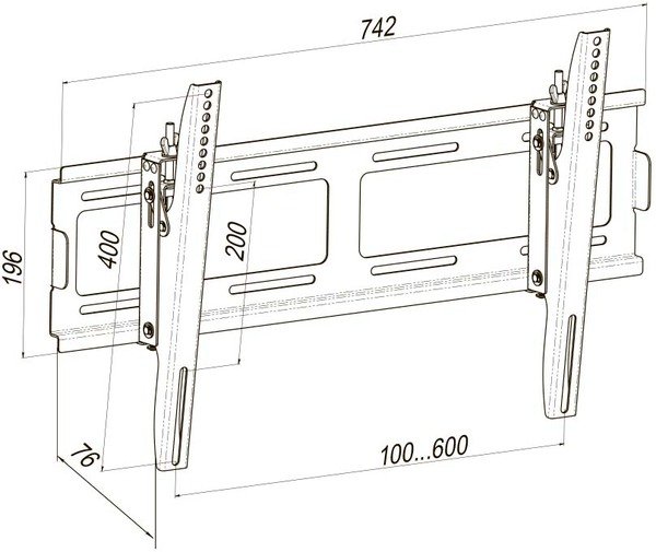 Кронштейн підходить для плазмових, LCD, LED телевізорів і моніторів з діагоналлю 40-65 дюймів і вагою до 60 кг. Підтримуваний стандарт VESA: від 200×200 мм до 600×400 мм.