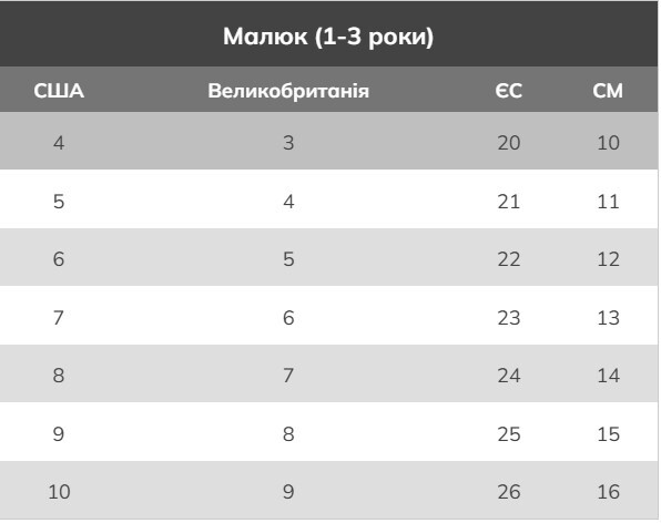 | Довжина ступні, см | 15 |