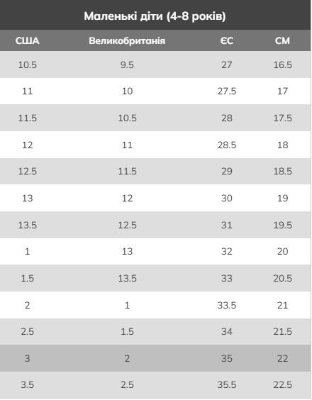 | Довжина ступні, см | 20 |