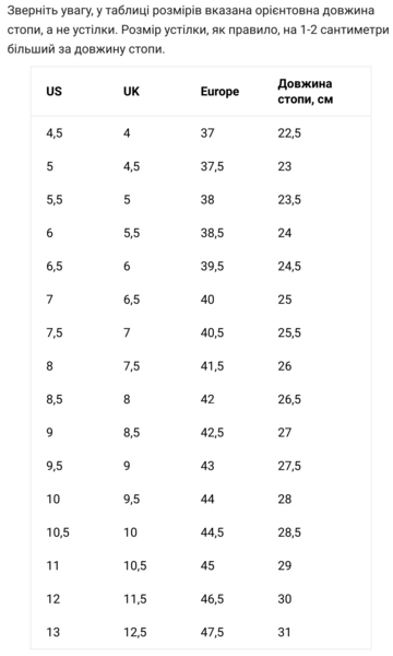 | Довжина ступні, см | 27 |