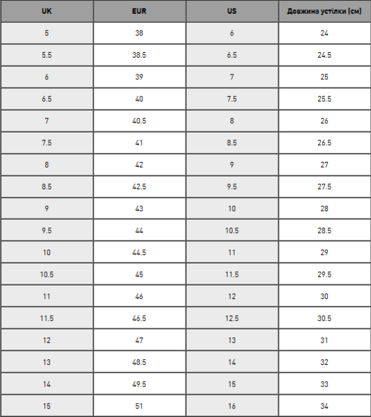 | Довжина ступні, см | 25,5 |
