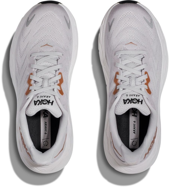 Напрочуд легка для стійкого взуття модель Arahi повертається, спираючись на ту саму стабілізуючу раму J-Frame, що і її попередниця. Відрізняючись, здавалося б, суперечливим поєднанням максимальної амортизації і мінімальної ваги, вони отримали вдосконалену вкладку і сітчастий верх із зонами повітропроникності. Напрочуд легкі та винятково зручні, Arahi 6 - це зручні підтримувальні кросівки для широкого кола бігунів. Були визнані корисними для здоров'я стоп. Для отримання знака кожен продукт розглядається групою Американської асоціації лікарів-ортопедів (APMA), щоб переконатися, що він сприяє здоров'ю стопи.