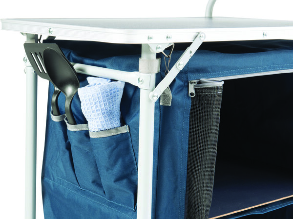 Відпочинок у наметовому містечку не обходиться без приготування їжі. Кухня кемпінгова Easy Camp Sarin Steel Blue (540031) дозволить прискорити та оптимізувати цей процес, роблячи його зручнішим та організованішим. Конструкція має стійку сталеву раму, бічні столики для готування, вбудований вітрозахист та шафу з полицями для зберігання каструль, сковорідок, посуду та їжі в одному місці. Кухня проста в установці та акуратно упаковується в сумку-чохол для перенесення та компактного зберігання.