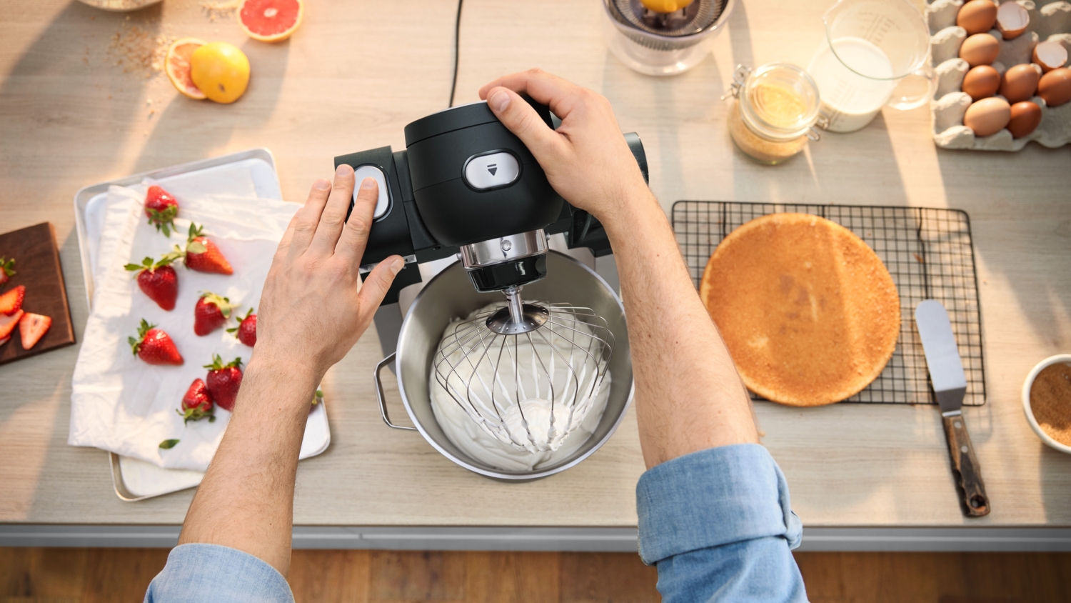 Велика чаша з нержавіючої сталі дозволяє приготувати велику кількість тіста за один раз (до 3,5 кг бісквітного тіста). Велика місткість чаші в поєднанні з 3D Planetary Mixing гарантує, що великі обсяги можна легко обробляти.