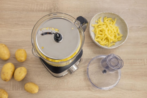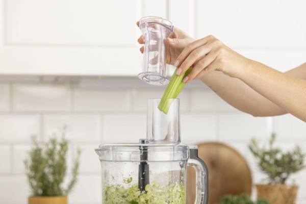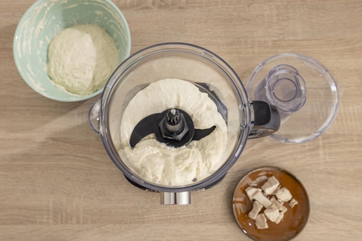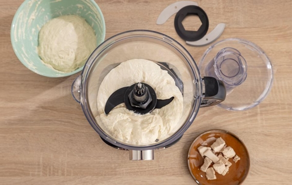 Ця функція має два спеціалізовані леза та насадки, які дозволять вам без зусиль впоратися з широким спектром завдань з обробки продуктів. Універсальний ніж з нержавіючої сталі подрібнює, змішує та пюрує інгредієнти, а пластикова насадка для тіста допомагає замішувати тісто та готувати свіжий хліб, випічку та тісто для піци.