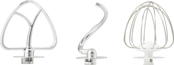 Змішування, збивання, замішування. Пристрій оснащений гачком для тіста, вінчиком та плоскою насадкою для збивання. Вінчик насичує інгредієнти повітрям і добре змішує їх для досягнення м’якої та пухкої текстури; гачок ефективно справляється навіть із найщільнішим тістом; а плоска насадка чудово збиває крем або ніжну білкову піну.