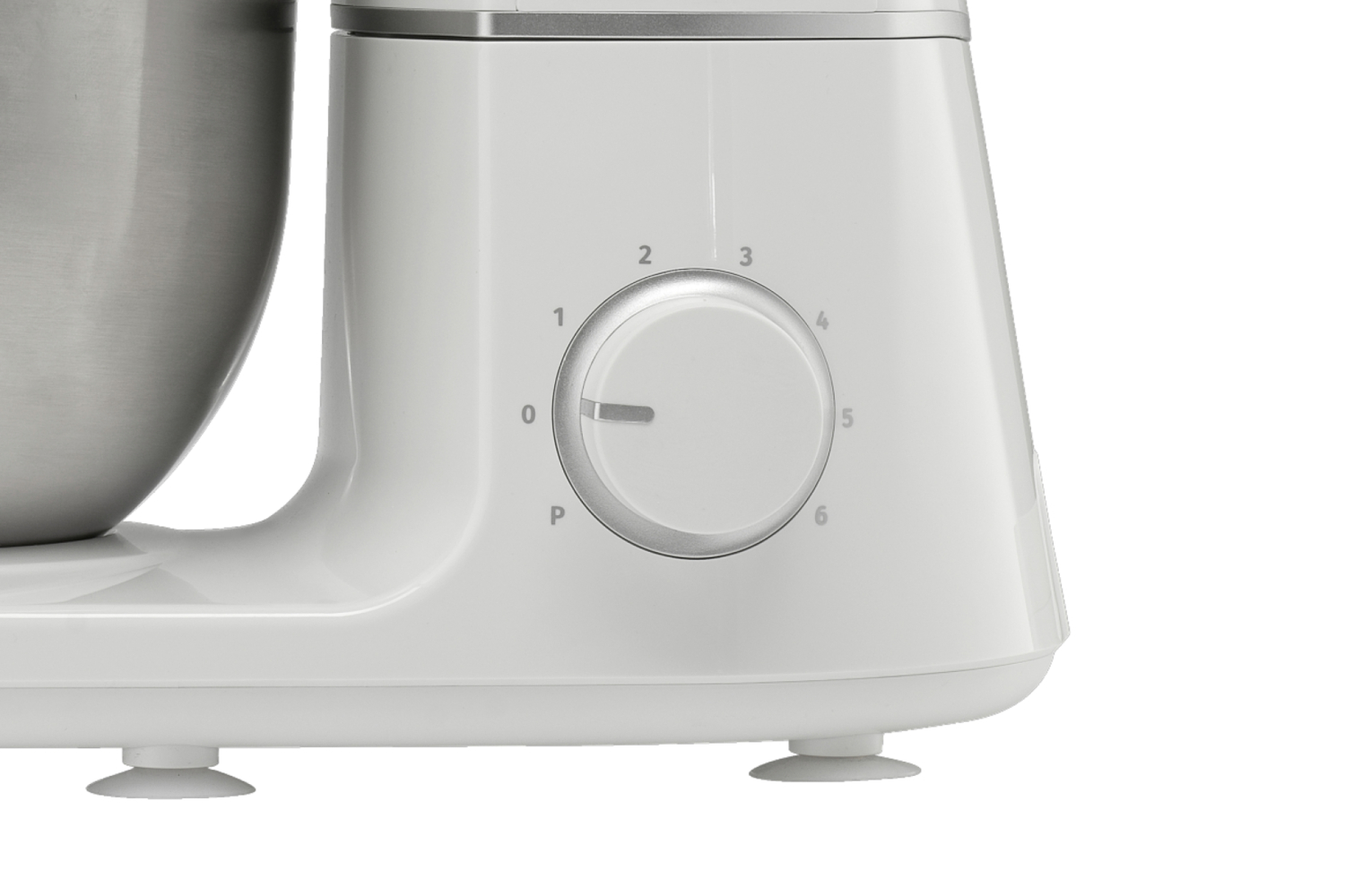 Вибирайте між шістьма рівнями швидкості, щоб виконати навіть найскладніші рецепти. Ви зможете ефективно працювати на будь-якому етапі приготування — від збивання бісквітного тіста, замішування дріжджового тіста до збивання великої кількості білків. Вакуумні ніжки забезпечують стійкість приладу навіть на максимальній швидкості.