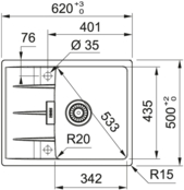 Мийка виготовлена з Фраграніту. Він містить до 80% натурального кварцу та до 20% високоякісної акрилової смоли. Такий склад забезпечує неймовірну стійкість до повсякденних впливів та має неперевершений вигляд. Витримує короткочасний вплив високих температур до 280°C. Всі мийки Franke з Фраграніту мають антибактеріальний захист Sanitized, який пригнічує ріст і розвиток 99,9% бактерій.