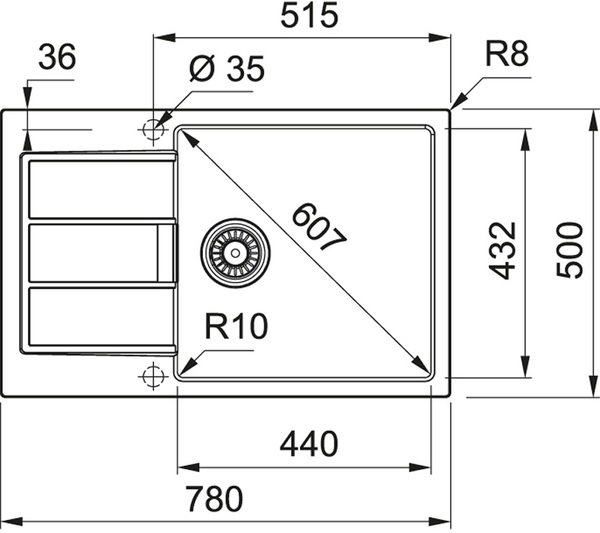Велика чаша дозволяє з легкістю мити навіть найбільший посуд, в тому числі решітки та дека духовки. Залежно від ваших потреб мийку можна повернути. Отвір під змішувач передбачений з обидвох сторін, тому обирайте найзручніше для вас розміщення чаші. При потребі ви можете встановити подрібнювач харчових відходів.