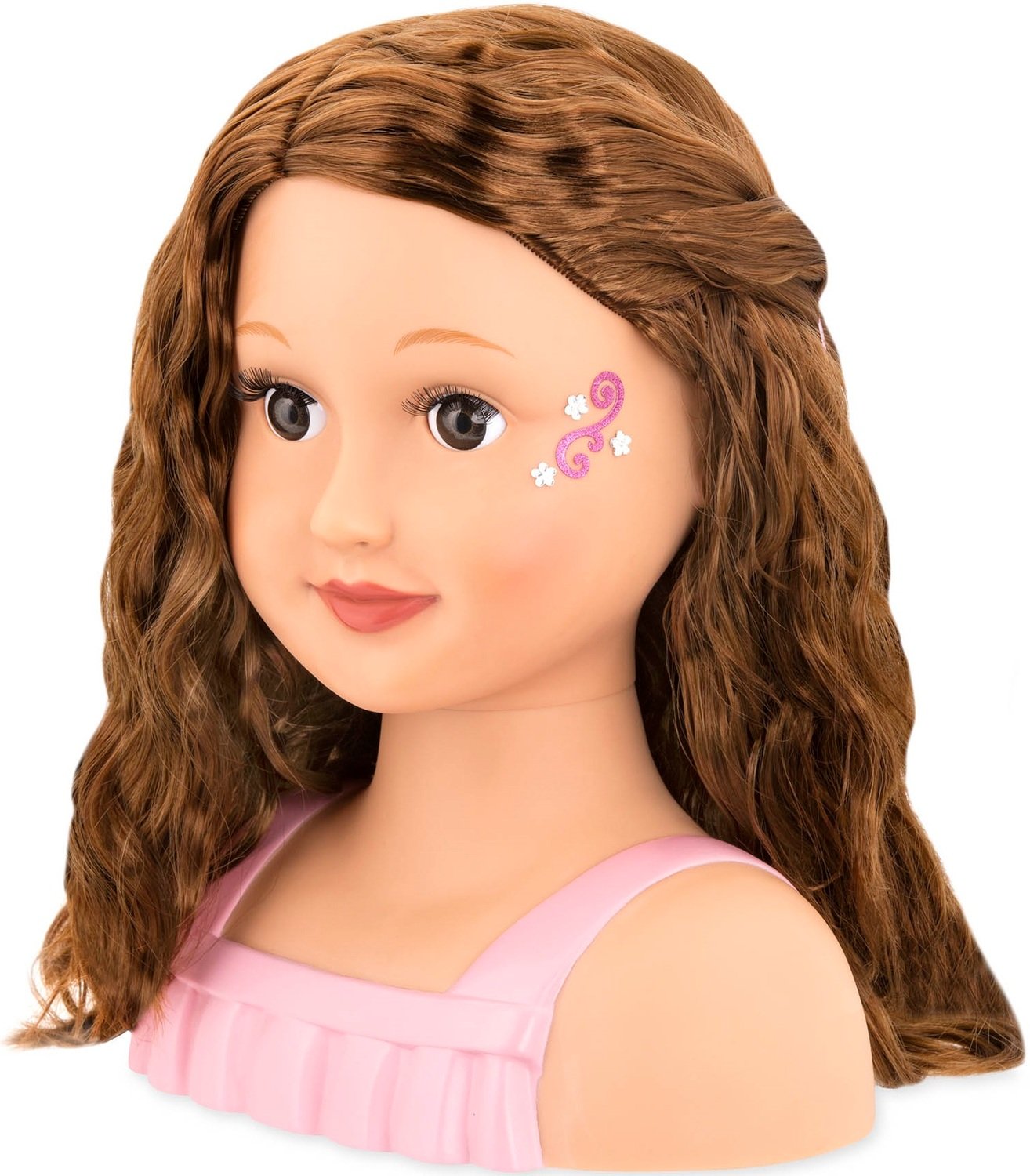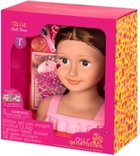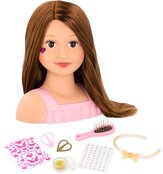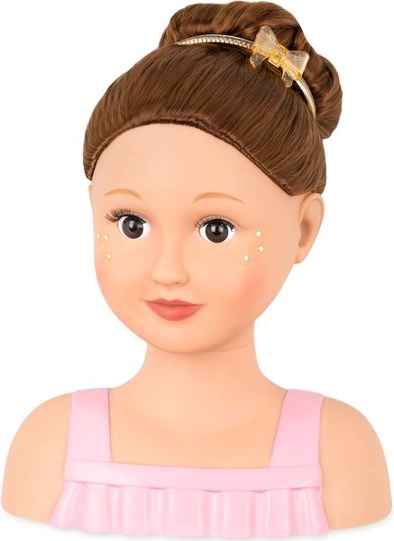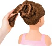 У цієї красивої 9-дюймової лялькової голови довге темне волосся з косим проділом і красиві карі очі. У Талії є шпильки для волосся, щітка і красива пов'язка на голову. Попрактикуйтесь в створенні кісок, пучків і багато чого іншого з цим ляльковим бюстом. Наклейки з блискітками і дорогоцінним камінням додадуть блиску вашому стилю. З вашою уявою ви можете створити так багато різних образів! Спробуйте стилі на Талії, а потім повторіть їх на собі! Цей бюст для ляльок – ідеальне місце, щоб перевірити свої блискучі ідеї.
