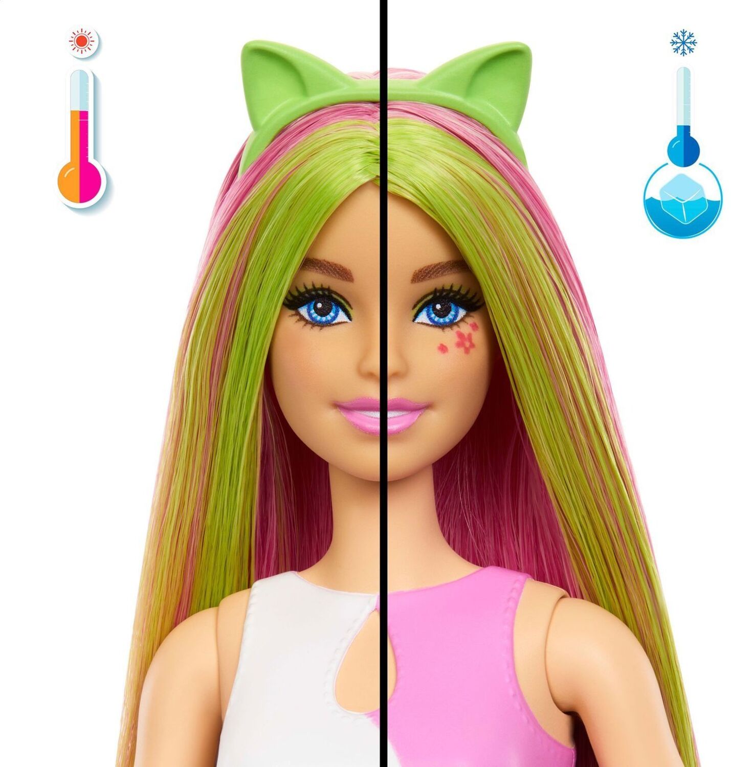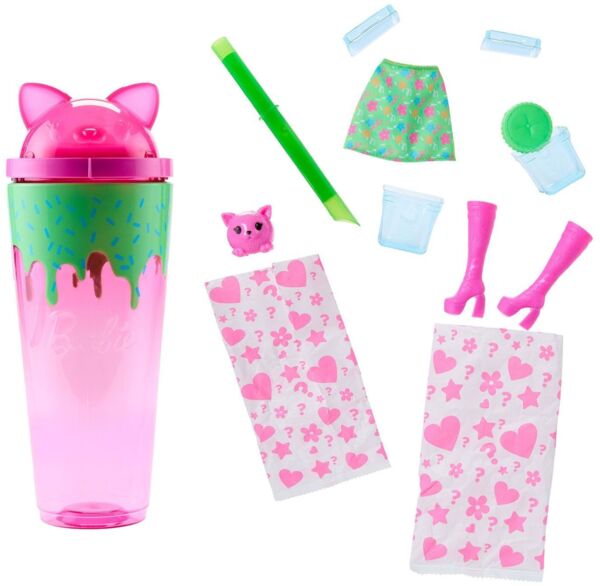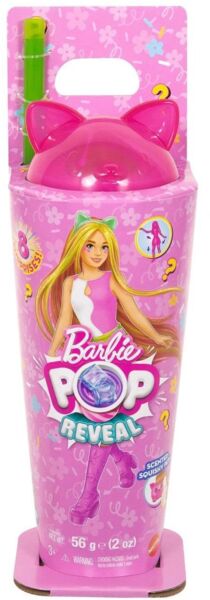 Незвичайна іграшка Barbie Pop Reveal Костюмована вечірка стане чудовим подарунком для дівчаток від 3 років. Barbie Pop Reveal - не просто іграшка, а ціла історія, захована в яскравому коктейльному стаканчику. Лялька любить вечірки, сюрпризи і все, що пов'язано з котиками, тому обрала образ кошеняти. Упаковка у формі коктейльного стаканчика надає грі елемент несподіванки. Відкрутіть кришечку у формі котячих вушок і знайдіть у ній слайм із сюрпризом. Потім зніміть плівку зі стаканчика і діставайте один за одним предмети. І наостанок ще один сюрприз: під час контакту з крижаною водою на щічках Barbie з'являється квітковий візерунок. Його можна видалити, змочивши їх теплою водою.