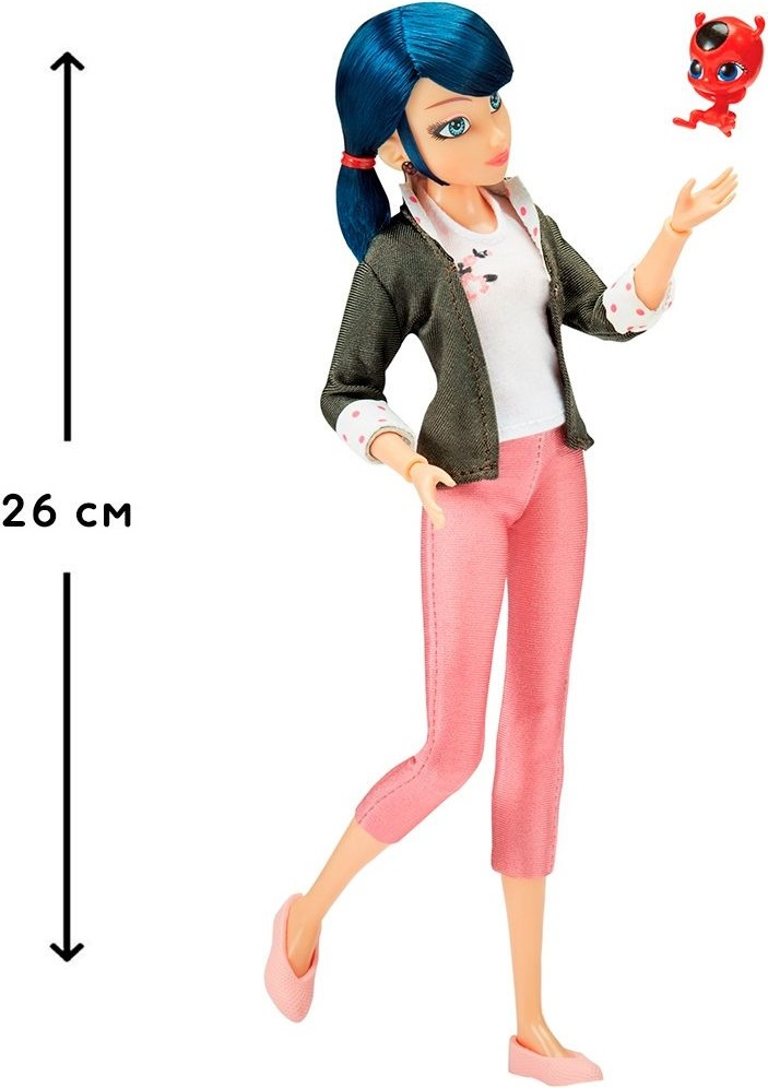 Познайомся ближче з Марінетт! Вона дуже мила та весела дівчинка. А ще Марінетт - стильна супергероїня, яка любить рожевий колір та модний одяг. Допоможи яскравій Марінетт врятувати Париж. У ляльки 13 точок артикуляції, її руки та ноги легко згинати, щоб відтворити будь-яку сцену з мультсеріалу. Гра з лялькою Марінетт розвиває в дитині уяву та фантазію.
