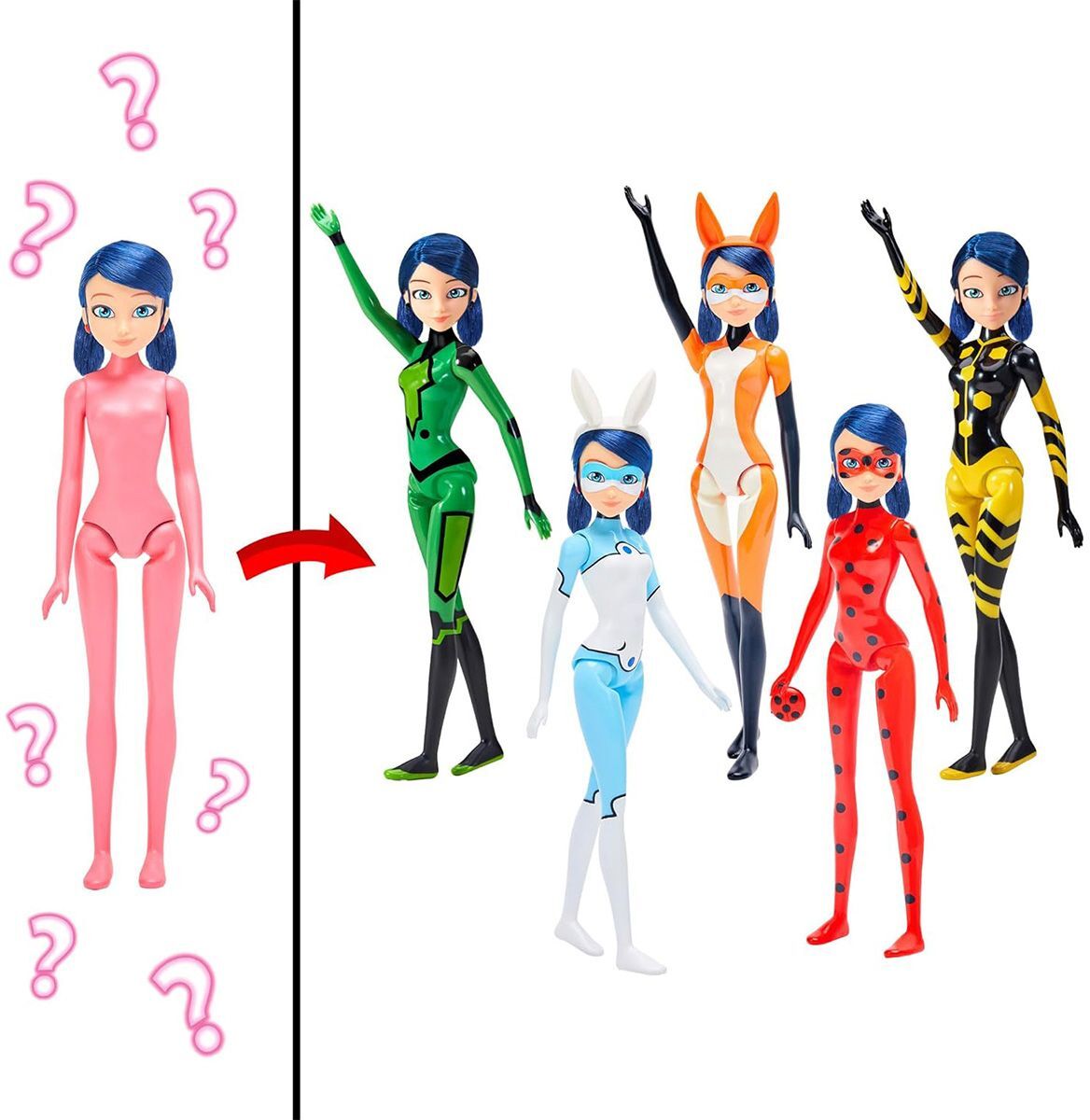 Просто додай води, і ось уже перед тобою Марінетт в одному зі своїх супергеройських костюмів, з усіма відповідними аксесуарами. І в якому з костюмів буде Марінетт - сюрприз. Хто ж попадеться тобі: сонечко, кролик, бджола, лисиця чи черепаха? Марінетт - далеко не звичайна студентка Парижа. За допомогою чарівних Квамі та їхніх чудових прикрас вона здатна перетворюватися на різних героїв і використовувати їхні сили, щоб стати справжньою супергероїнею.