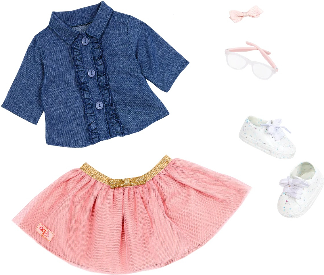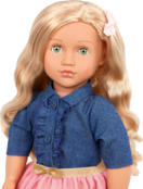 Лялька Our Generation Емілі - чарівна 46-сантиметрова лялька, одягнена в стильну джинсову сорочку і рожеву спідницю. Її довге світле волосся і виразні зелені очі надають їй реалістичного і привабливого вигляду.