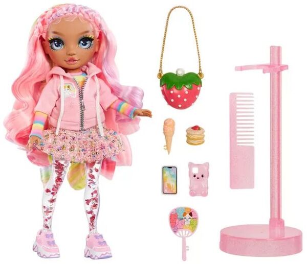 | Комплектація | Комплект одягу, Лялька, Пара взуття, Тістечко, Підставка для ляльки, Гребінець, Сумка, Телефон, Чохол для смартфона |