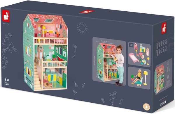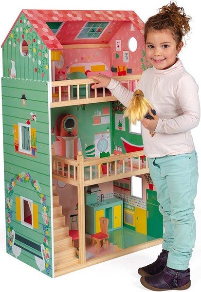 Очень качественный дом для кукол Janod. Я дочке его приобрела, она в восторге. Меня подкупило, что он из дерева сделан. Пластиковые игрушки я не особо люблю, а вот древесина точно безопасна для ребенка. Да и краски натуральные, аллергии не вызывают. Он, кстати, очень красиво оформлен, яркий и красочный. Дочке особенно нравится, что в нем три этажа. Есть и спальня, и ванная, и кухня. Она всех кукол в разные комнаты рассадила и играет. Очень здорово, что все детали скреплены хорошо. Он падал пару раз, но ничего не поломалось. Я вот подумываю такой племяннице теперь заказать. Сама его впервые приметила в каталоге. Потом на этом ресурсе нашла и купила.