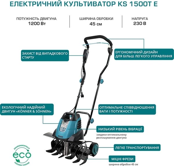- Культиватор електричний Konner&Sohnen KS 1500T E, 230В, 1500Вт (KS1500TE)