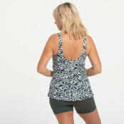 Цей цільний купальник у стилі танкіні з шортами створений для тих, хто цінує зручність і надійність. Завдяки вшитому бюстгальтеру зі знімними вкладишами він забезпечує гарну підтримку та охайний силует. Ідеальний вибір для активного плавання й відпочинку на пляжі.