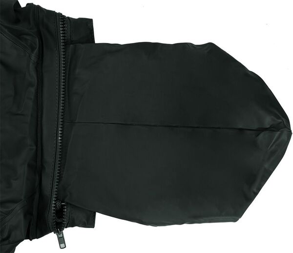 - висунутий прозорий козирок у капюшоні захищає очі від дощу