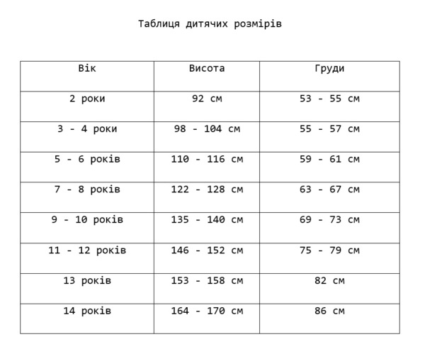 - Іменна етикетка всередині (для розмірів до 8 років);