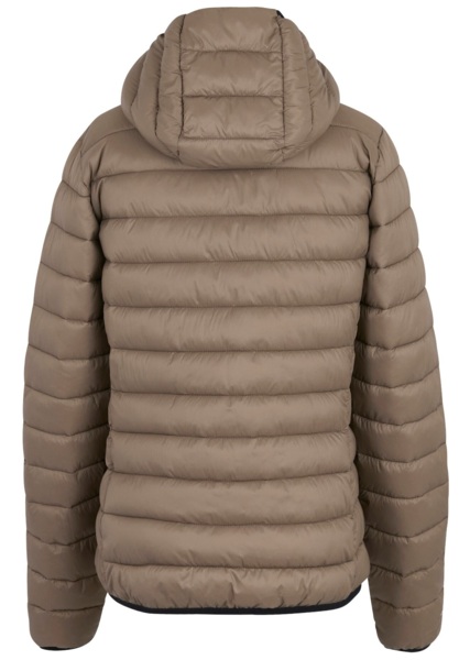 Куртка виготовлена з легкої поліамідної тканини 20D з міцним водовідштовхувальним покриттям, що захищає від мряки та невеликого дощу. Утеплювач із переробленого синтетичного пуху забезпечує тепло без зайвої ваги та є альтернативою натуральному наповнювачу.