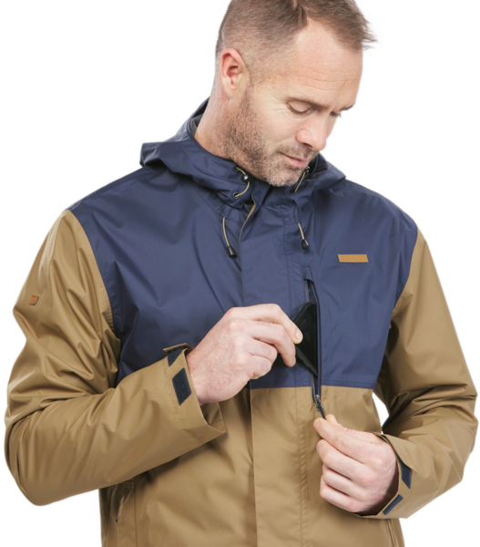 Куртка чоловіча для туризму Quechua NH500 Imper водонепроникна 8650027 4XL синьо-коричнева